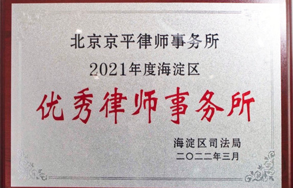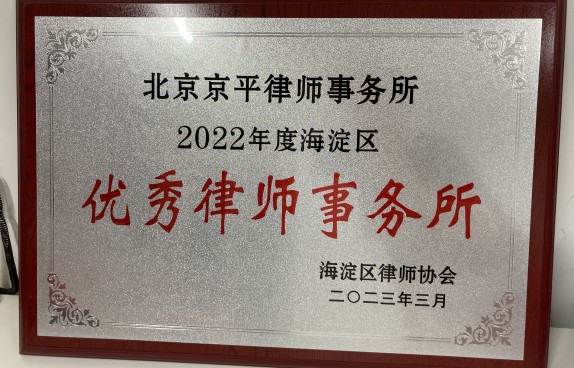 北京京平律師事務(wù)所榮獲2022年度海淀區(qū)“優(yōu)秀律師事務(wù)所”稱(chēng)號(hào)